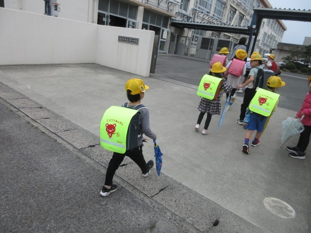 4月15日(水)雨が心配な朝となりました。今日は長い傘を持って登校している子が大勢いました。長靴をはいている人もいましたね。午後は傘が活躍するかもしれませんね。見通しも悪くなるので、周りの様子をよく見て、いつも以上に気を付けましょう。