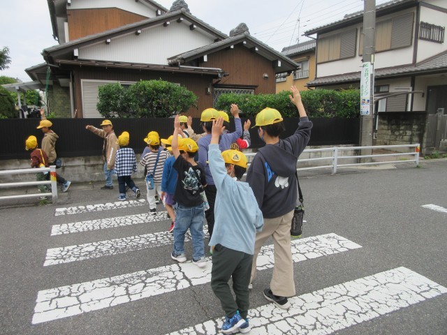 引き続き、1年生と6年生の校外学習出発の様子です。6年生の実行委員さんがあいさつをしたり、説明をしたりしていましたね。お兄さんやお姉さんの話をよく聴いて楽しく過ごしましょう。横断歩道は手をあげて渡るように6年生が1年生と一緒に行動してくれました。6年生のみなさん、ありがとうございます。