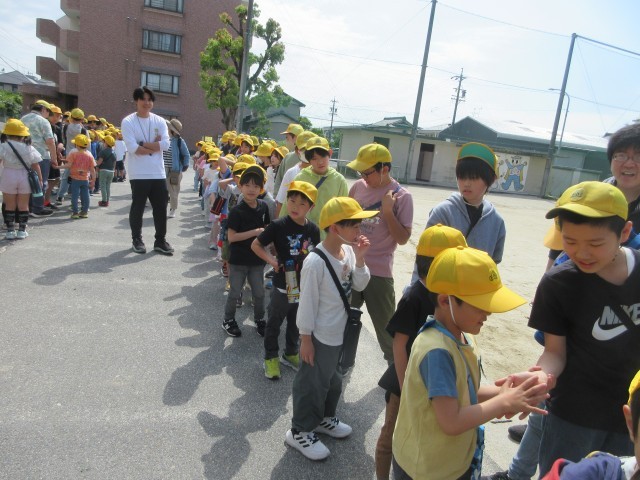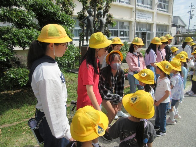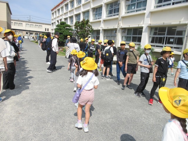 4月28日(火)予定通り、1年生と6年生は校外学習に出発しました。今回は4組、5組のみなさんです。行先は「はなのき公園と巾川公園」です。ペアーを組んで仲良く出かけていきました。交通安全と熱中症には十分気を付けて「いってらっしゃい」