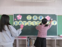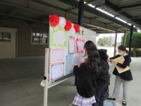 7組の授業の様子です。書の時間に「にじ」の文字に取り組んでいました。墨汁、毛筆の使い方はみんな上手になっていますね。始筆や文字のつながりに気をつけて丁寧に書いています。
