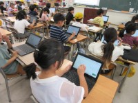 2年生の授業の様子です。国語では「スーホの白い馬」の音読をしていました。姿勢もよく、みんなに聞こえるように上手に読んでいましたね。花丸です。
