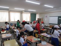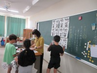 特別講師の松浦先生と一緒に学んでいます 書の時間 4年生