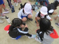 5年生の授業の様子です。体育では青空のもと、Tボールに取り組んでいます。打って...