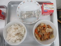 今日の給食は、麦ごはん、牛乳、大根と豚肉の煮物、さば銀紙焼きです。さば銀紙焼きは...