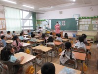1年生の書作品づくりは、いよいよ本番を迎えました。本番は、うちわに象形文字を...