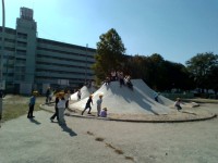 1年生はあきみつけをしに、下中公園に行きました。落ち葉のシャワーや木の実を使った...