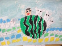 2年生の図工の作品です。「食べ物の中に動物が入ったら・・・。」というテーマで絵...