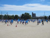 6時間目に、6年生は運動会の練習を行いました。フラッグを振る音が運動場に響き渡...