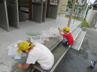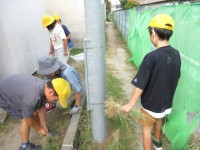 体育器具庫の周りの草抜きをがんばっています。力を込めて抜いていましたね。2年生...