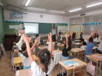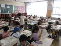 3年生の授業の様子です。算数では1キログラムの水の重さをはかっていました。グ...