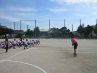 6年生の運動会練習の一コマです。トラック上に並んでウエーブの練習をしていました。...