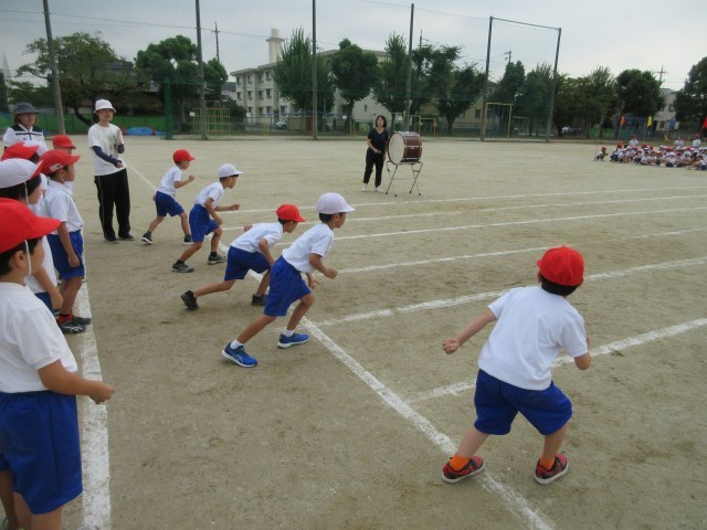 10月7日(火)2年生はかけっこの練習を運動場で行いました。駆け足や回れ右のや...