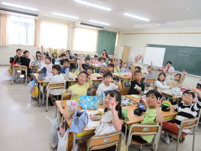 引き続き、西館の2年生と南館4年生のお弁当タイムの様子です。