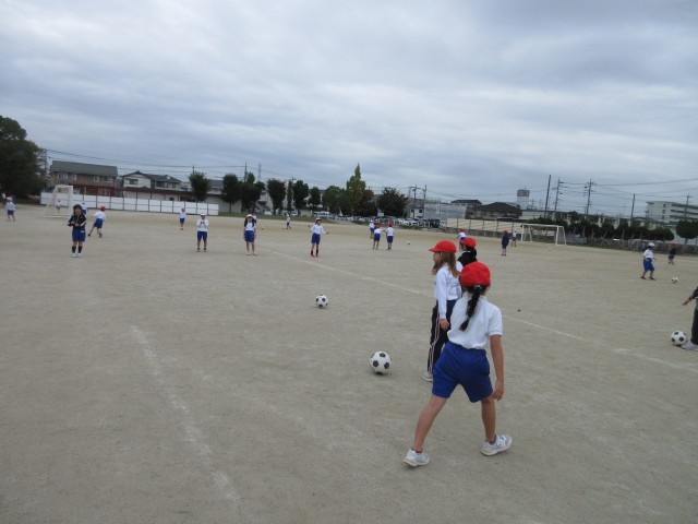 2年生の授業の様子です。体育ではボールを蹴る運動をしています。ペアーの友達が取...