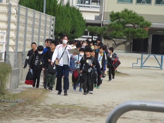 11月13日(木)5年生は1回目のプールへ出発しました。さすが5年生のみなさん...