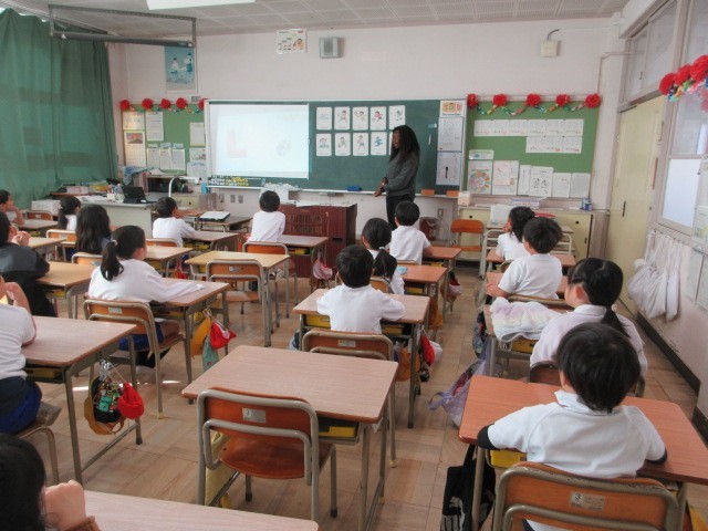 1年生の授業の様子です。ALTと担任による外国語の活動がありました。アルファベ...