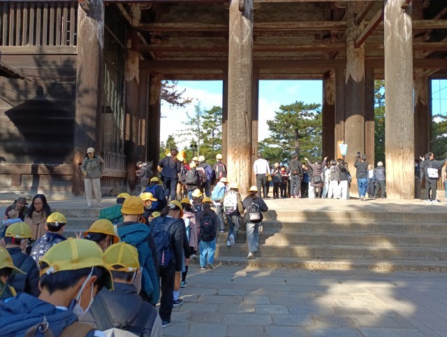 二番目の目的地、東大寺に到着しました。バスの中から鹿を見つけて歓声があがりまし...