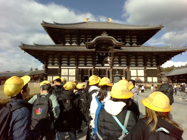 東大寺見学の一コマです。雲が晴れて青空が見えてきました。大仏殿は思った以上に大...