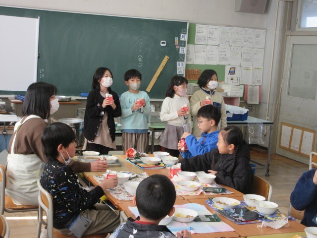 3年生が栄養教諭の先生を給食の時間にお招きしていました。教室を見に行くと、その...