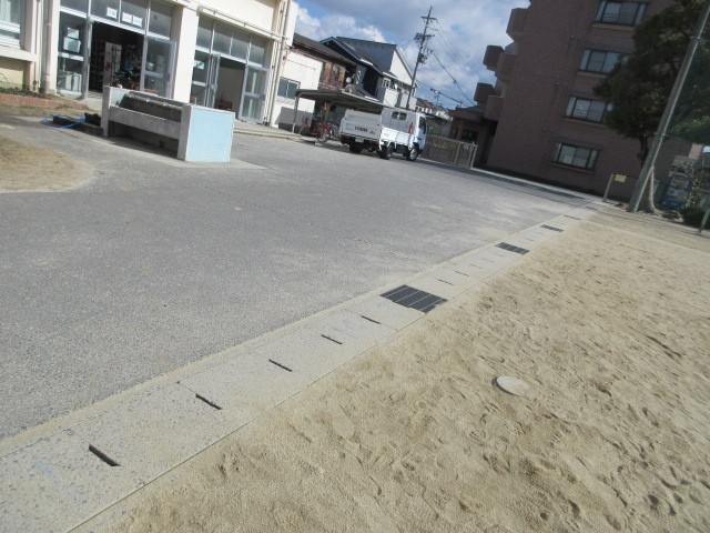 市の職員の方が、運動場に砂を入れてくださいました。風で運動場の砂が舞い、滑って...