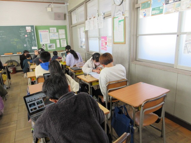 5年生の授業です。教え合って学んでいました。学校は学ぶ場です。集団で学ぶ場です...