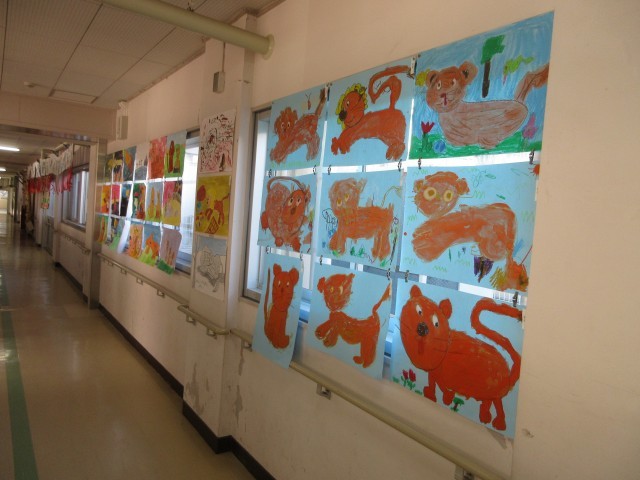 本館1階 7組さんの廊下には図工などで作った作品が掲示されています。ぜひ近くを...