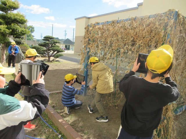 4年生の授業の様子です。ヘチマの観察をしています。1年間を通して、成長の様子を...