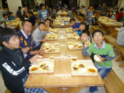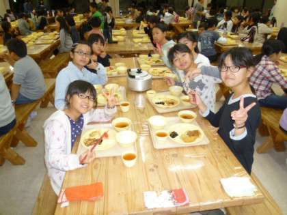 キャンプファイヤーに備えて、みんな、いっぱい食べました。食堂の皆さん、ありがとうございました!