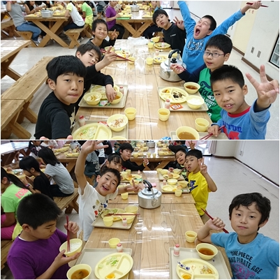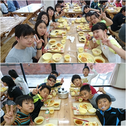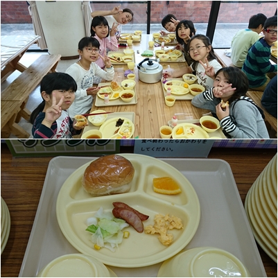 体調不良の児童もなく美味しく朝食をいただきました。