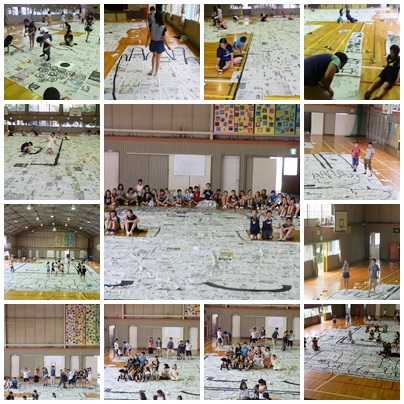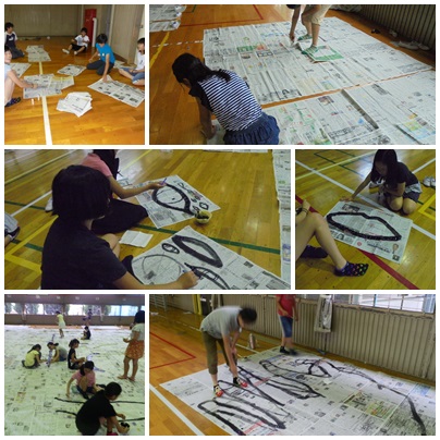 6年生が、奈良の大仏の大きさを調べて、新聞を使って実物大の大仏を作りました。