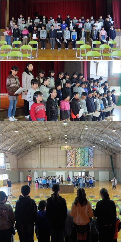 3回目の合同練習です。式次第にそって練習をしました。号令や指示に従って緊張感のある練習ができていました。素晴らしい(^_^)v