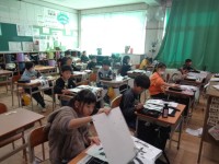 今週から水泳の授業が始まりました。みんな、冷たい水に「キャーキャー」言いながらも、一生懸命に泳いでいました。