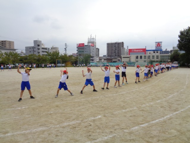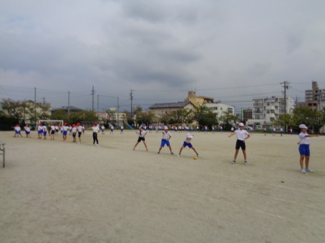 10月7日(火)3・4年生合同の体育で、運動会の音遊の練習をしました。初めて運動場で合同で曲に合わせて踊りました。4年生はトラックの北側で踊ります。応援よろしくお願いいたします。