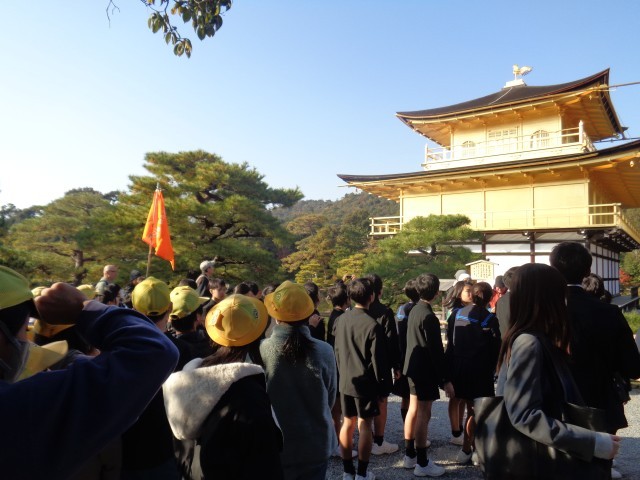 11月21日(金)2日目の鹿苑寺金閣の様子です。開門と同時に入りました。晴れた空に美しい金閣を見ることができました。