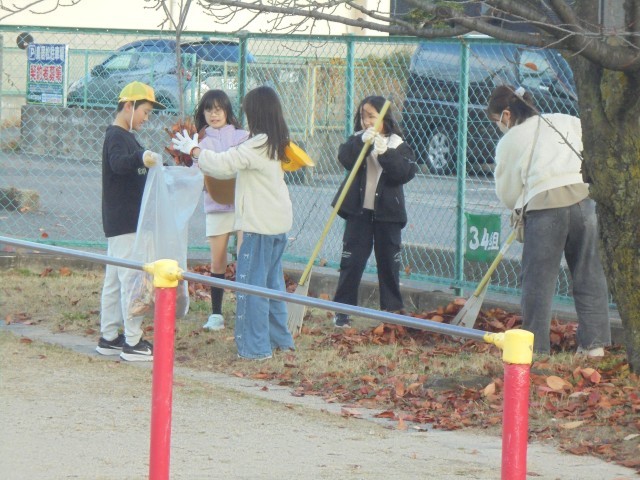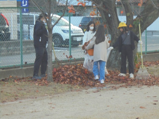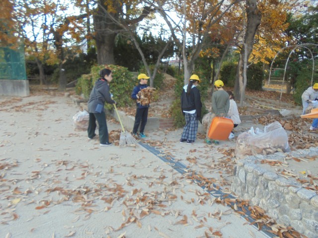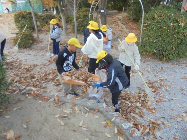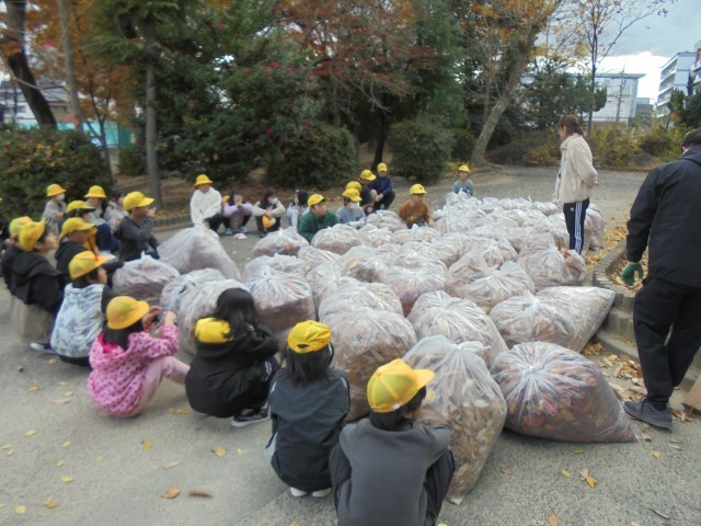 12月3日(水) 落ち葉拾い週間の先頭を切って、5年生が落ち葉拾いを行いました。みんなで協力して50袋以上の落ち葉を集めることができました。参加いただいたボランティアの皆様、ありがとうございました。