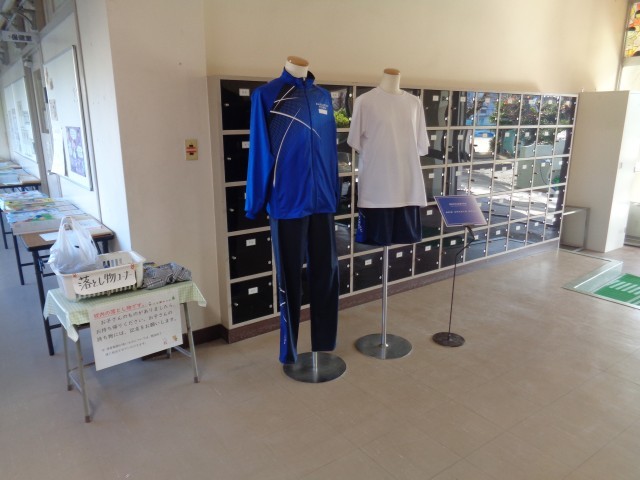 個人懇談会の期間には、学校公開日にも展示させていただきましたが、東部中学校の次年度の体操服や落とし物を展示しております。ぜひご覧ください。