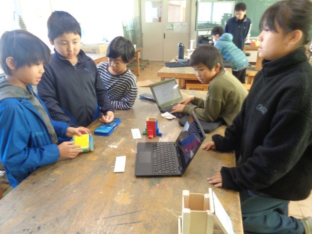 12月11日(木)2時間目の2組の図工の様子です。作品の鑑賞をしました。友だち作品の良いところを見つけながら鑑賞をしあいました。