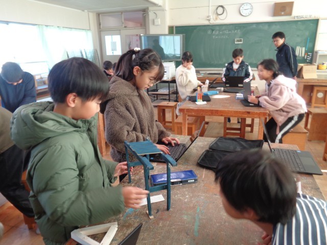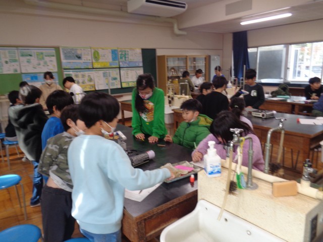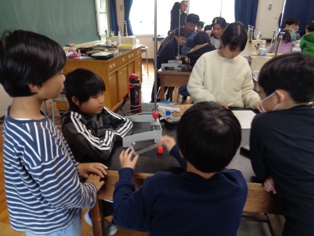 3時間目は、1・2組合同で理科の実験を行いました。友だちと八幡の「た」助け合いながら学習を進めることができました。