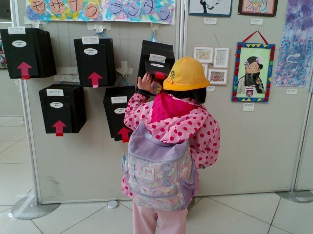 自分たちの作品が飾られているのを嬉しそうに見ていました。