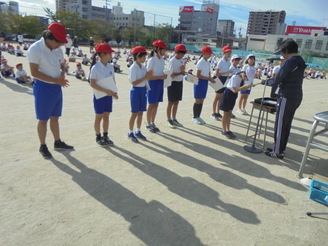 10月20日(月)集会を運動場で行い、後期の児童会・委員会・学級委員の認証を行いました。「みんなが行きたくなる八幡小学校」になるよう、頑張ってください。