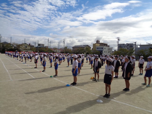 10月20日(月)運動会(23日)にむけて全校練習を行いました。八幡小学校の運動会の開閉会式は児童会や委員会の児童が中心となって行います。八幡の「や」「やってみる」ですね。当日少しお天気が気になりますが、八幡っ子の思いが通じて晴れるとよいですね。