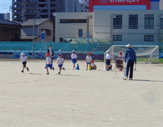 10月17日(金)運動会で行う、かけっこの練習の様子です。「よういどん」の合図で、まっすぐ走る練習をしました。「走ろうとしてみる」こと「最後まで走ってみること」を目標にしています。スタートに立てることが八幡の「や」「やってみる」です。どうぞご理解をよろしくお願いいたします。