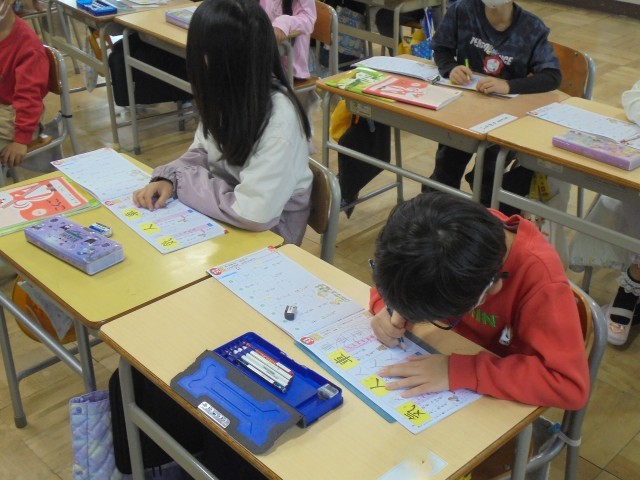 11月10日(月) 国語の授業で漢字の学習をしました。止め、はね、はらいに注意して丁寧に書きながら、新しい漢字を覚えることができました。