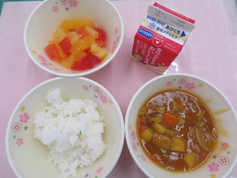 入学してから、初めての給食となりました。給食当番になった子は上手に配膳することができました!