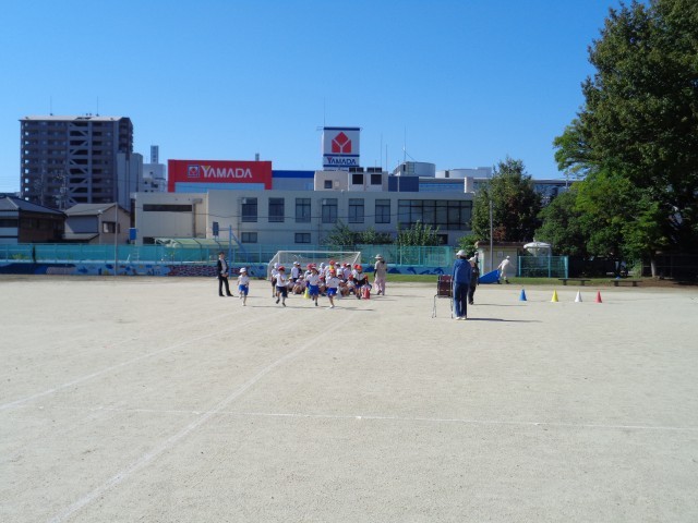 10月7日(火)1・2年生合同の体育で、運動会の競遊の練習をしました。初めての運動会に向けて頑張っている1年生のお兄さん・お姉さんとして頑張っています。