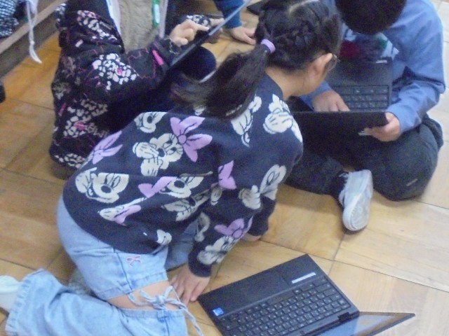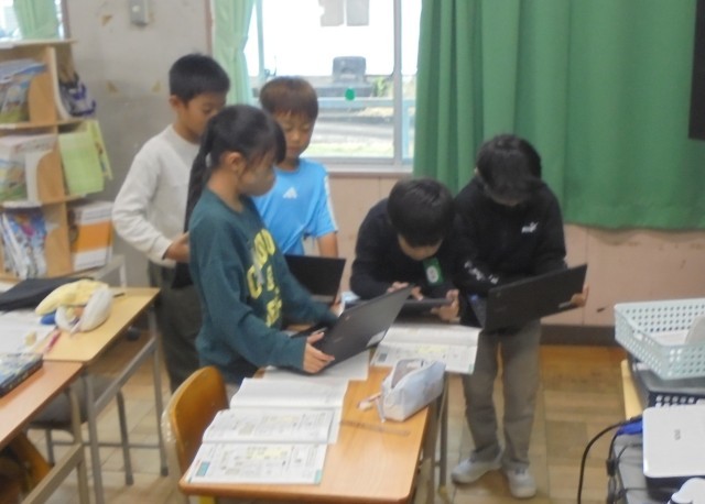 11月10日(月) 算数の授業でかけ算の筆算を学習しました。学習端末を利用して友達と教え合いながら学習を進めました。