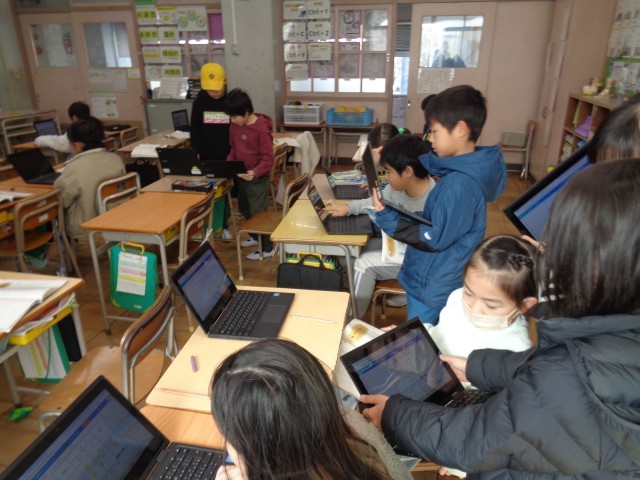 1月28日(水)1組は国語、2組は理科の様子です。3年生はSSTとタブレットPCを活用した探究的な学習をできる教科は行っています。友だちとかかわりながら情報を交流して学習を深めています。