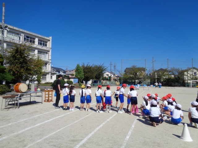 10月7日(火)3・4年生合同の体育で、運動会の音遊の練習をしました。初めて運動場で合同で曲に合わせて踊りました。4年生はトラックの北側で踊ります。応援よろしくお願いいたします。