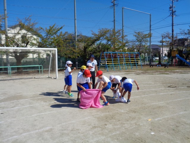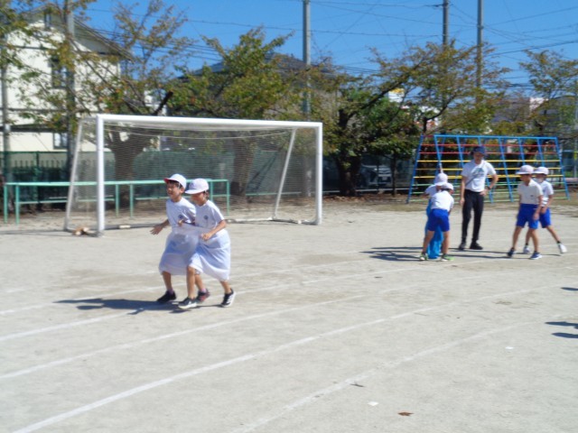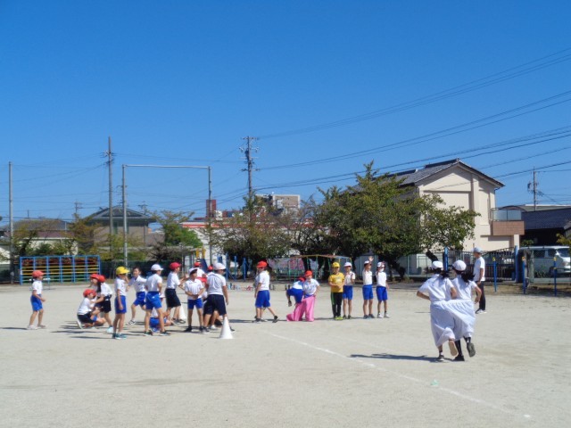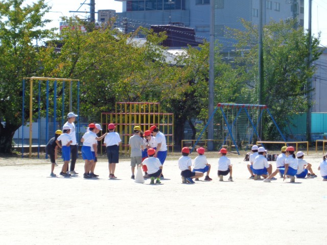 9月22日(月)1組も2組も外で体育を行いました。風が吹き、暑さが少しおさまったので、思いっきり体育で体を動かしました。