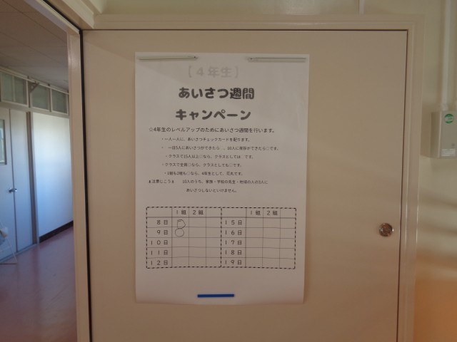 4年生は高学年に向けて学年集会を開き「あいさつ週間キャンペーン」を自分たちで考え、今週から実行をしています。八幡っ子高学年として、八幡の「わ」「笑ってあいさつ」の合言葉に向かって頑張ってください!